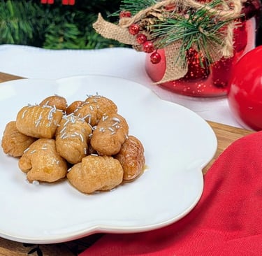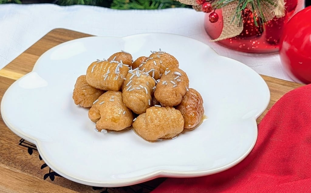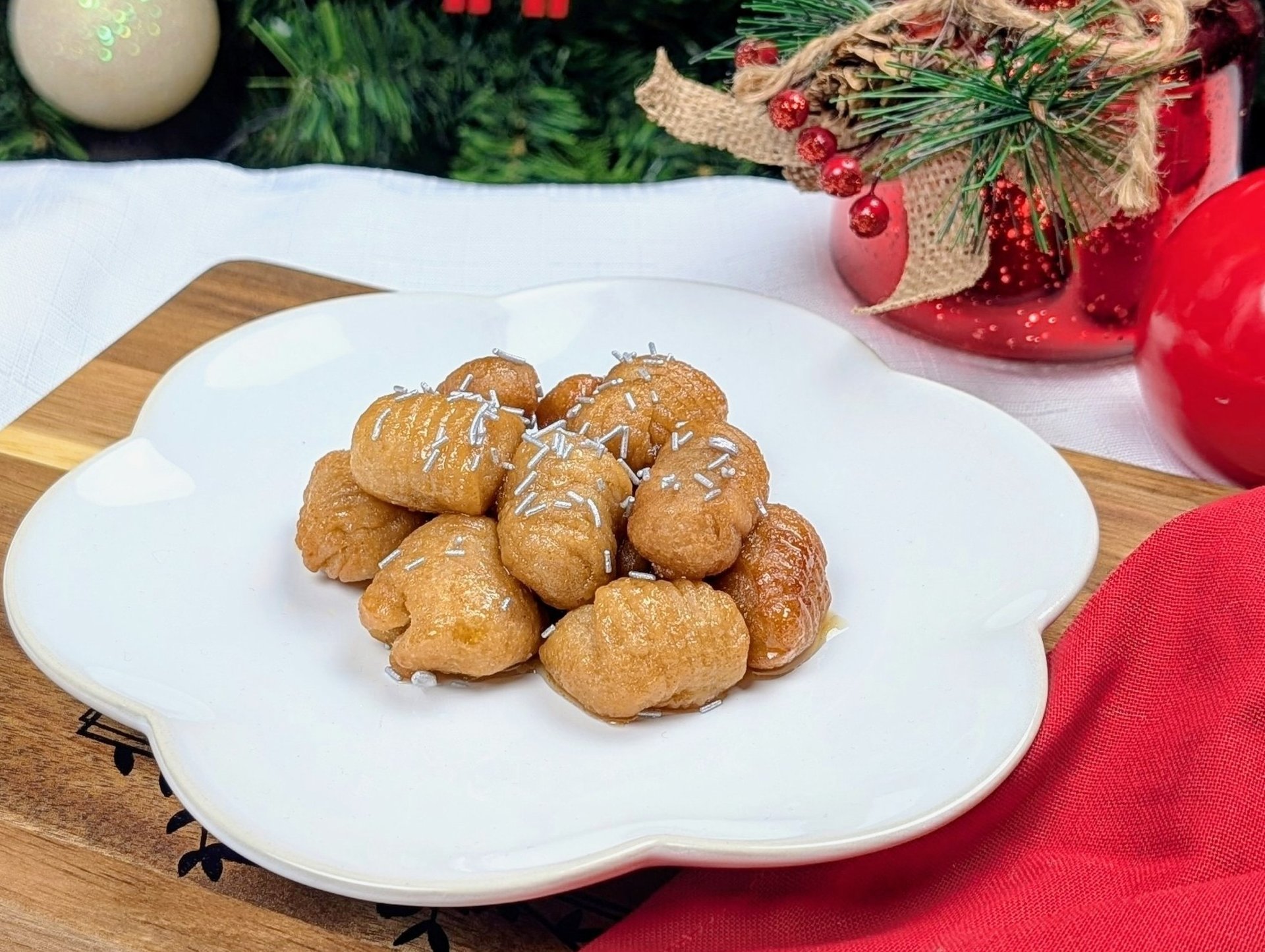 L’aspetto di questi dolcetti, rustici e semplici, non è bellissimo, ma il sapore è delizioso! Nella forma ricordano gli gnocchi e vengono preparati con una FROLLA PROFUMATISSIMA, FRITTI e PASSATI poi NEL MIELE come la pignolata calabrese o gli struffoli napoletani.
