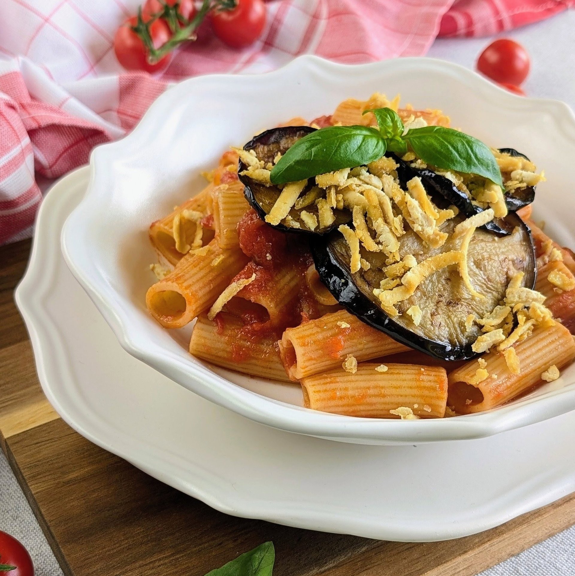 Pasta alla Norma con "ricotta salata" vegan